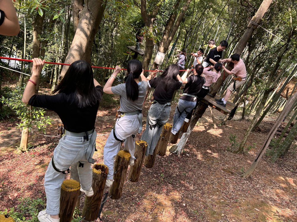 下午,大家來到開福區(qū)素質(zhì)拓展訓練基地,開啟了一場腦力對決和體力對決。“名字大作戰(zhàn)”、看圖猜猜猜、歌曲接龍等一個個精心設(shè)計的團隊小游戲激發(fā)了大家濃厚的興趣和參與熱情,在燒腦的游戲中發(fā)揮才智、相互熟悉,進一步加深彼此間的了解和友誼。“飛越叢林”挑戰(zhàn)更是把本次活動推向了高潮,在一個個高空關(guān)卡中,大家相互幫助,相互鼓勁,齊心協(xié)力,集思廣益,順利完成了“看似不可能完成的”項目。